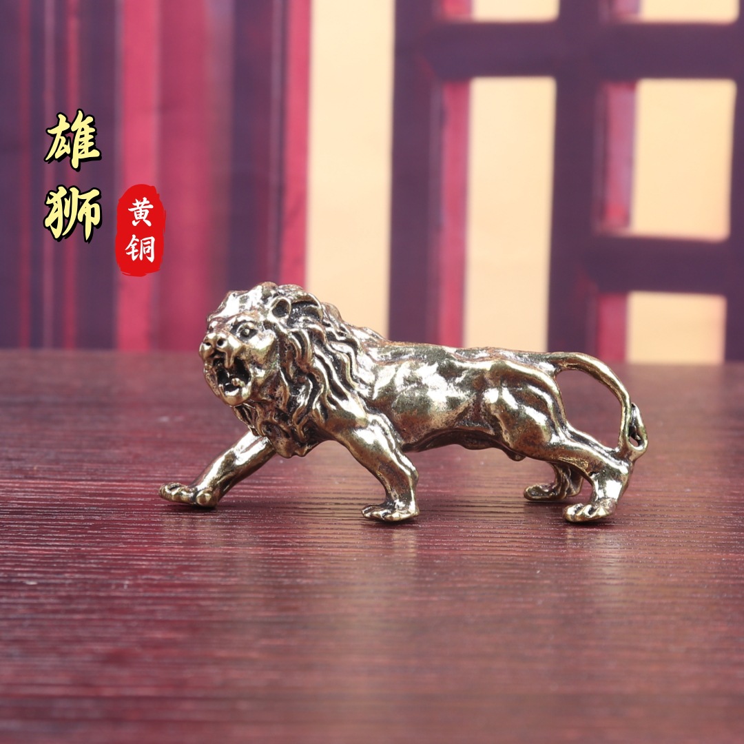 クリエイティブ純真鍮ライオンジャングルキングライオンキングソリッドティーペット古いオブジェクトホームデスクトップ工芸品装飾品