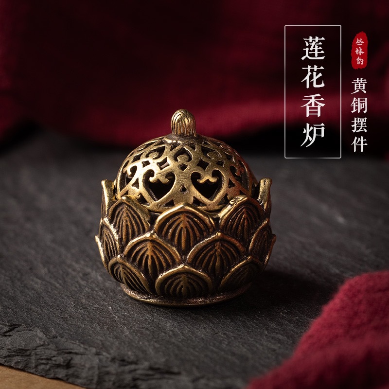 真鍮は古いハスの葉の蓮の香りのストーブの家の置物をします。