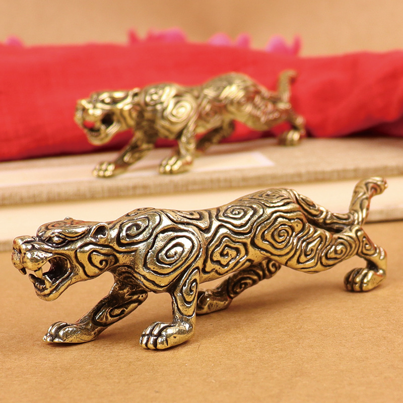 純銅製の豹の置物、家のデスクやお店の装飾に、茶ペットとしても使える、真鍮工芸の金豹の置物
