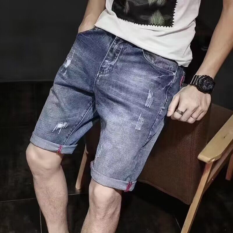 ストレートレッグリップドトレンディブランドミッドパンツ5点薄手夏大きいサイズ5点パンツメンズ韓国風トレンドデニムルーズショートパンツ