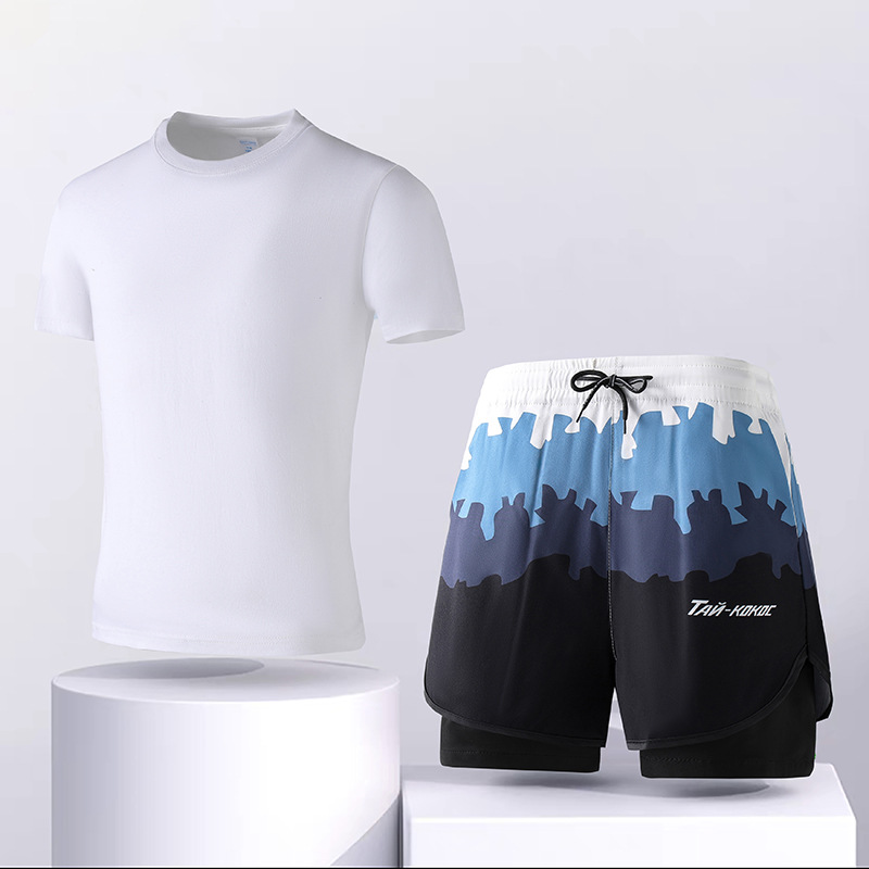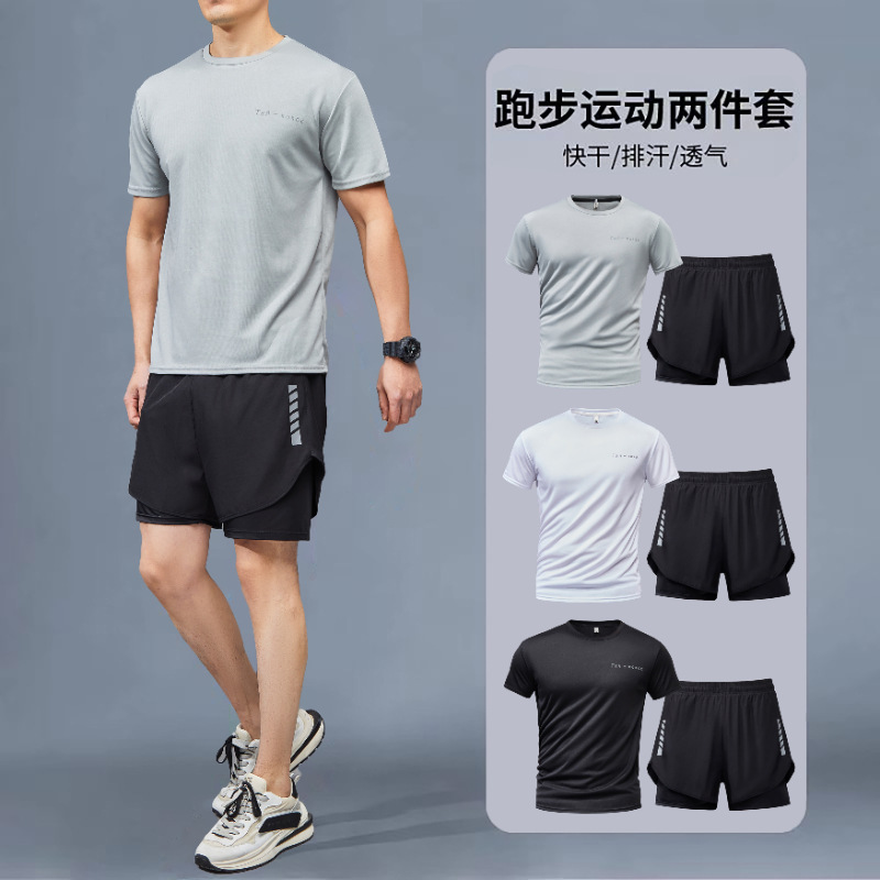 夏のフィットネスアイスシルク服メンズマラソンランニングスポーツスーツ速乾性陸上競技トレーニング機器コンプリートセット