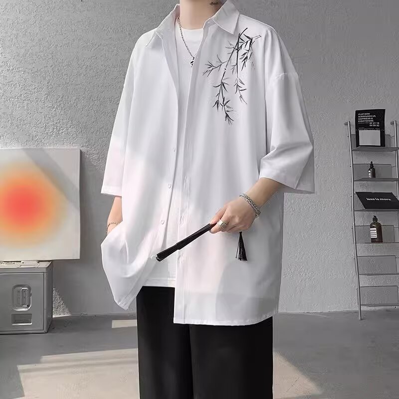 2025 シャツジャケット竹夏ボタン中国風の新しいスタイル唐スーツ半袖シャツメンズ新しい中国風シャツ