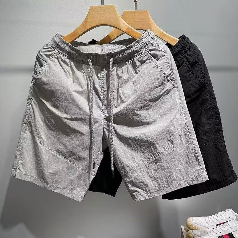 夏用超薄型アイスシルク速乾ショーツメンズ無地5点パンツ微弾性快適5点カジュアルパンツ男性用アウターウェア