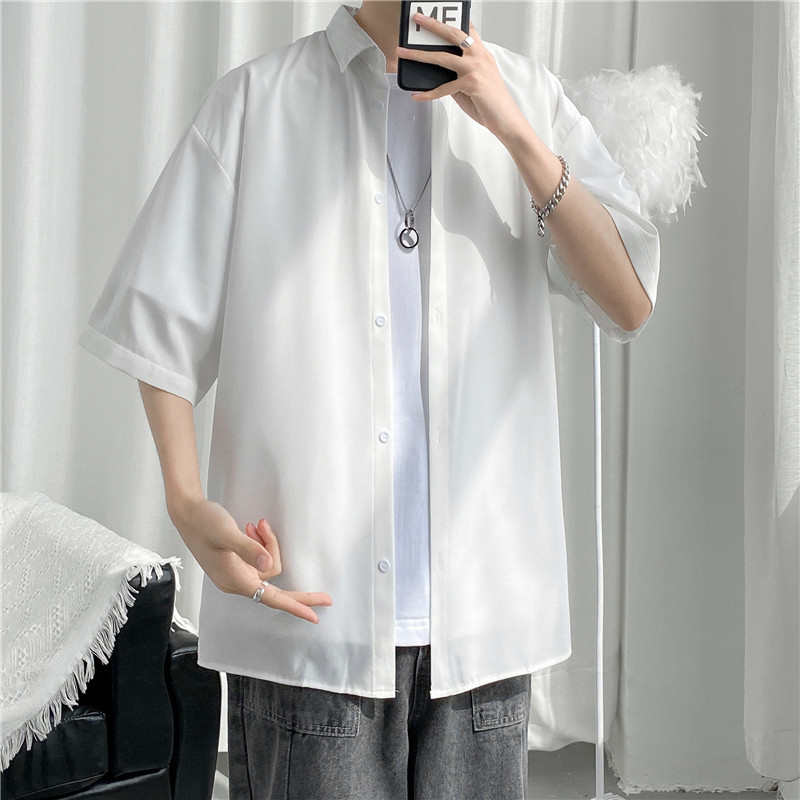 白いシャツトップ、ハンサムな禁欲半袖シャツ、夏の男性用、高級半袖アイスシルクドレープDK感