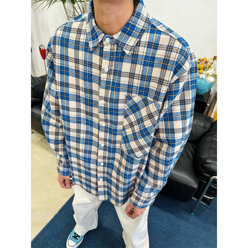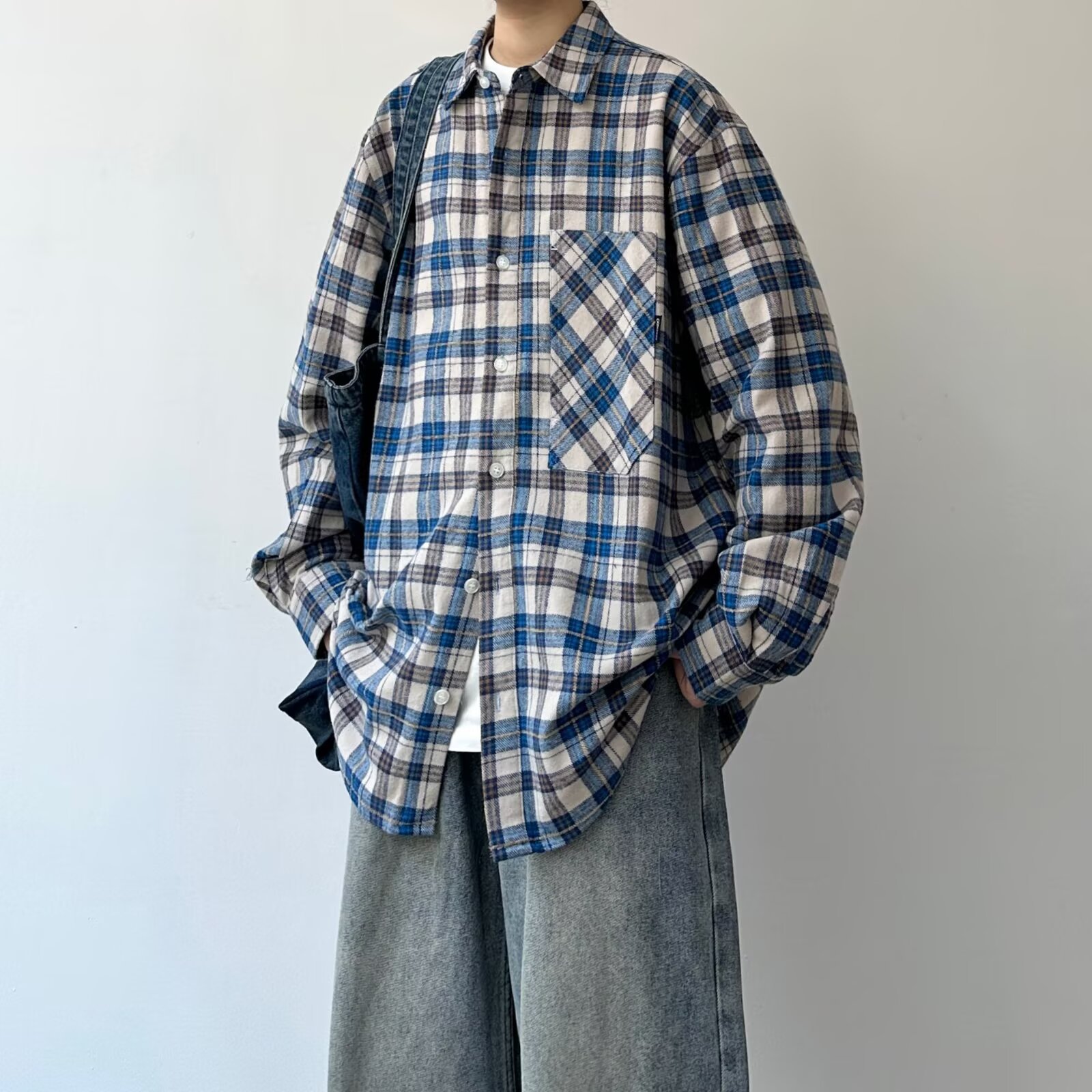 2025 春夏新日本シティボーイレトロ作業服長袖チェック柄ルーズシャツ男性と女性のチェック柄シャツ
