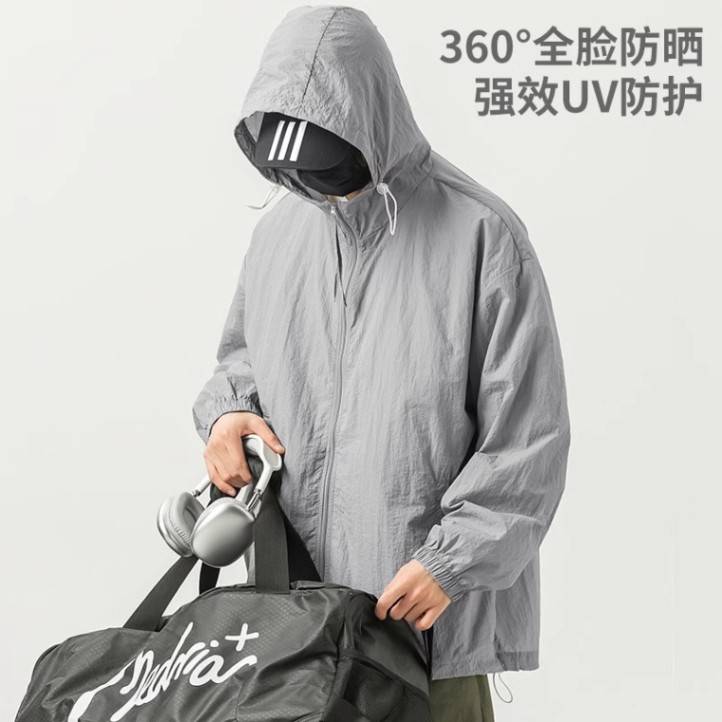 ジャケット屋外通気性日焼け防止服 2025 アイスシルクメンズフード付き日焼け防止服抗 UV 軽量夏