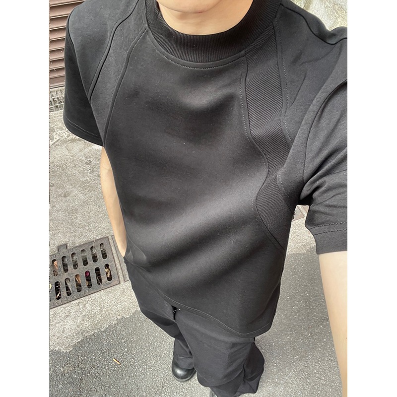 アメリカンハイストリートシルエットパッチワーク半袖Tシャツメンズサマーデザイントップスゆったりトレンドブランドスポーツ半袖Tシャツ