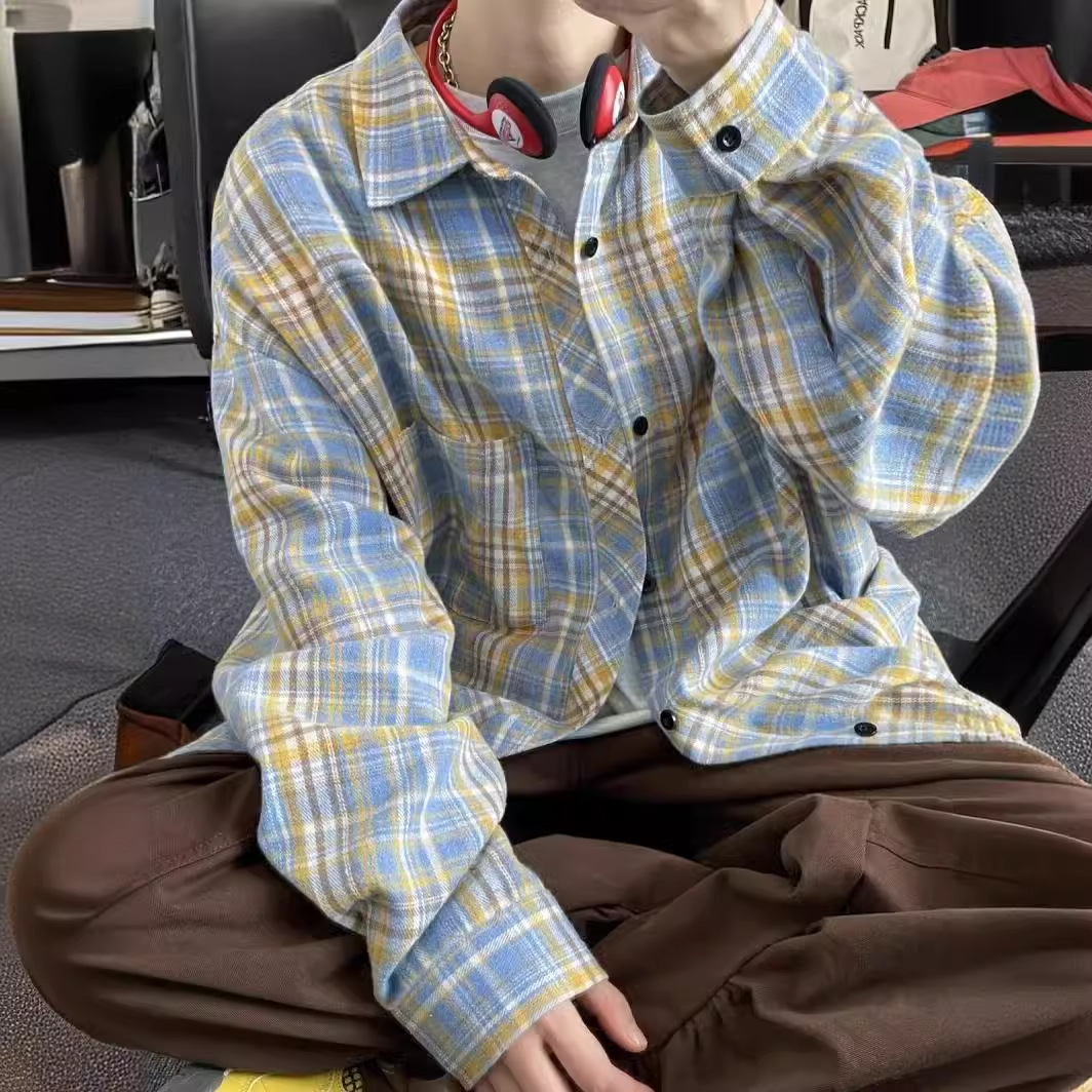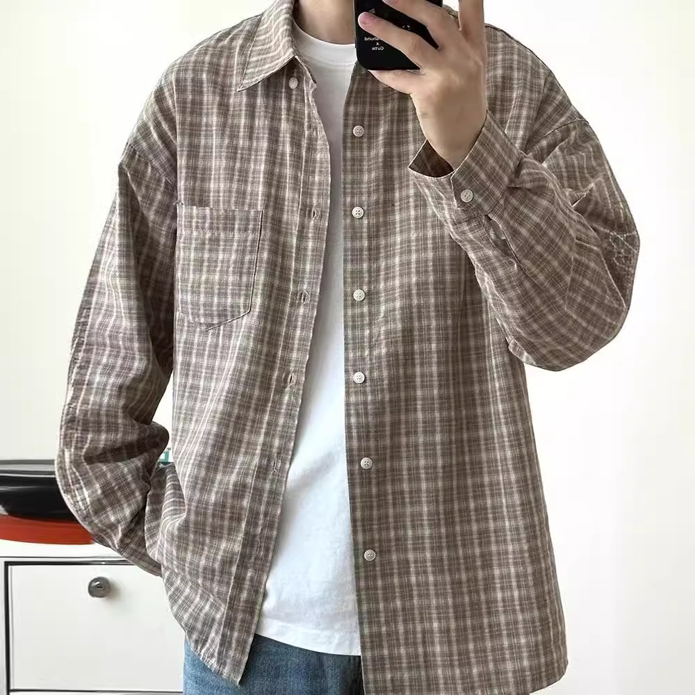 シティボーイチェック柄シャツメンズ韓国版トレンディ長袖2024春新作イントレンディブランドルーズ日本製ジャケット