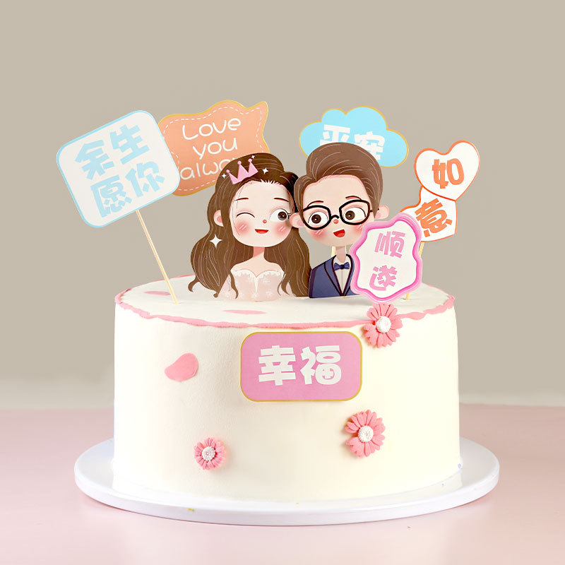 バレンタインケーキ紙挿し札新郎新婦カップル七夕愛ラブケーキ装飾誕生日プラグイン