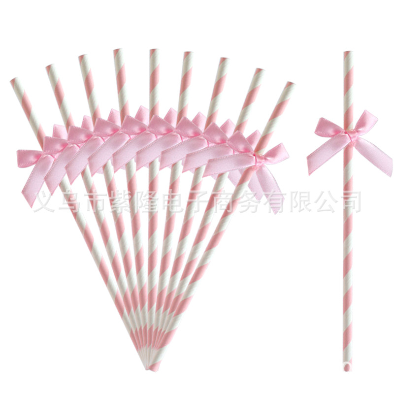 クロスボーダー使い捨てクリエイティブ紙ストローちょう結びケーキデザート装飾プラグイン誕生日パーティーコスチューム用品