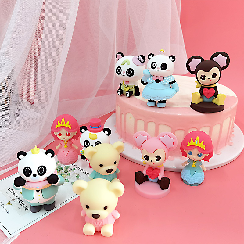 子供の漫画のケーキの装飾の柔らかいゴムの置物のネットの赤い子供のネズミのパンダの王女の誕生日の焙煎のプラグインは流行します。