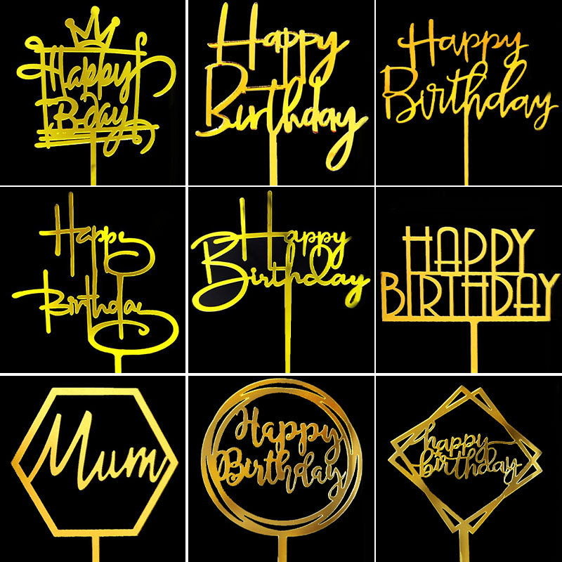 金色アクリルhappy birthdayケーキ装飾プラグインネット赤流行児童誕生日おめでとうカード