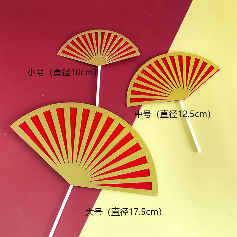 ケーキ装飾扇子プラグイン紅金折扇祝寿老人誕生日寿星アクリル祥雲挿し札