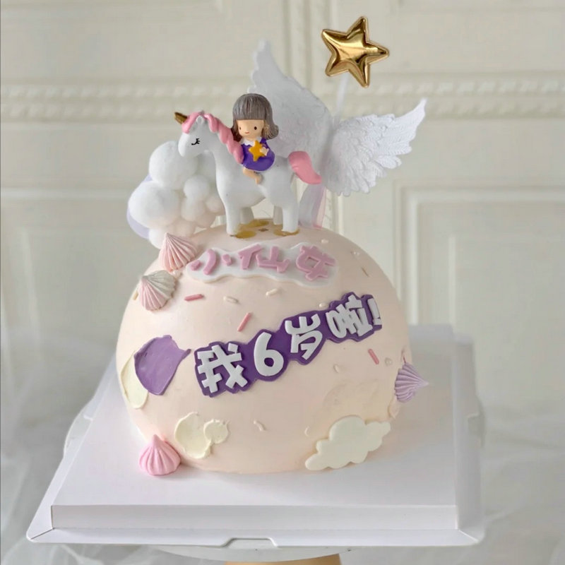 ケーキの装飾の置物の樹脂のユニコーンの馬に乗る女の子のネットの赤い焙煎の装飾の人形の置物の人形