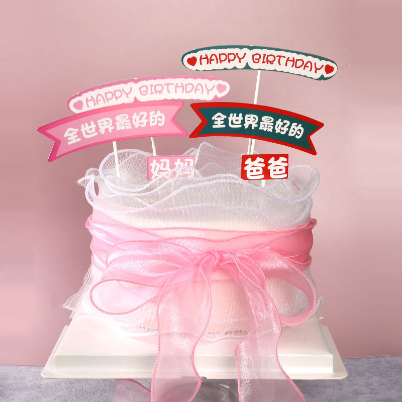 祝日の焙煎装飾お父さんとお母さんの誕生日ケーキのカードを挿して母の日の父の日のケーキのプラグインを挿します。
