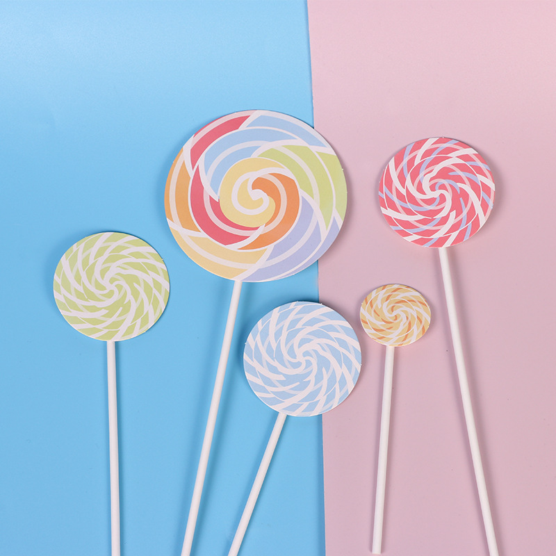 ケーキの装飾のプラグインのロリポップの挿し込みの5本は焙煎のデザートの台を詰めて誕生日のパーティーのケーキの挿し込みを手配します。