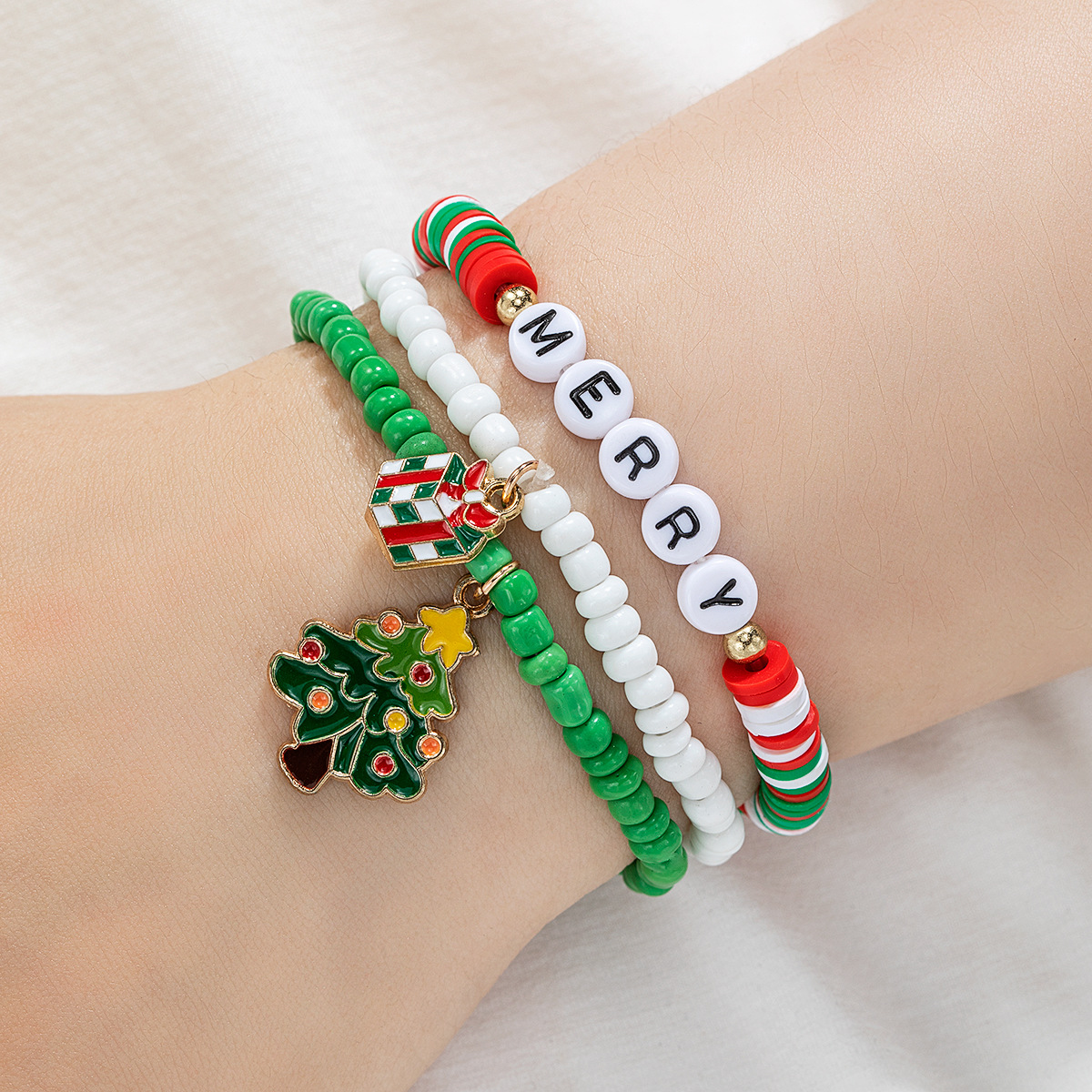 クリスマスの合金のクリスマスツリーのギフトボックスのペンダントのアルファベットの柔らかい陶米の玉の弾力の女性のブレスレットの3セット