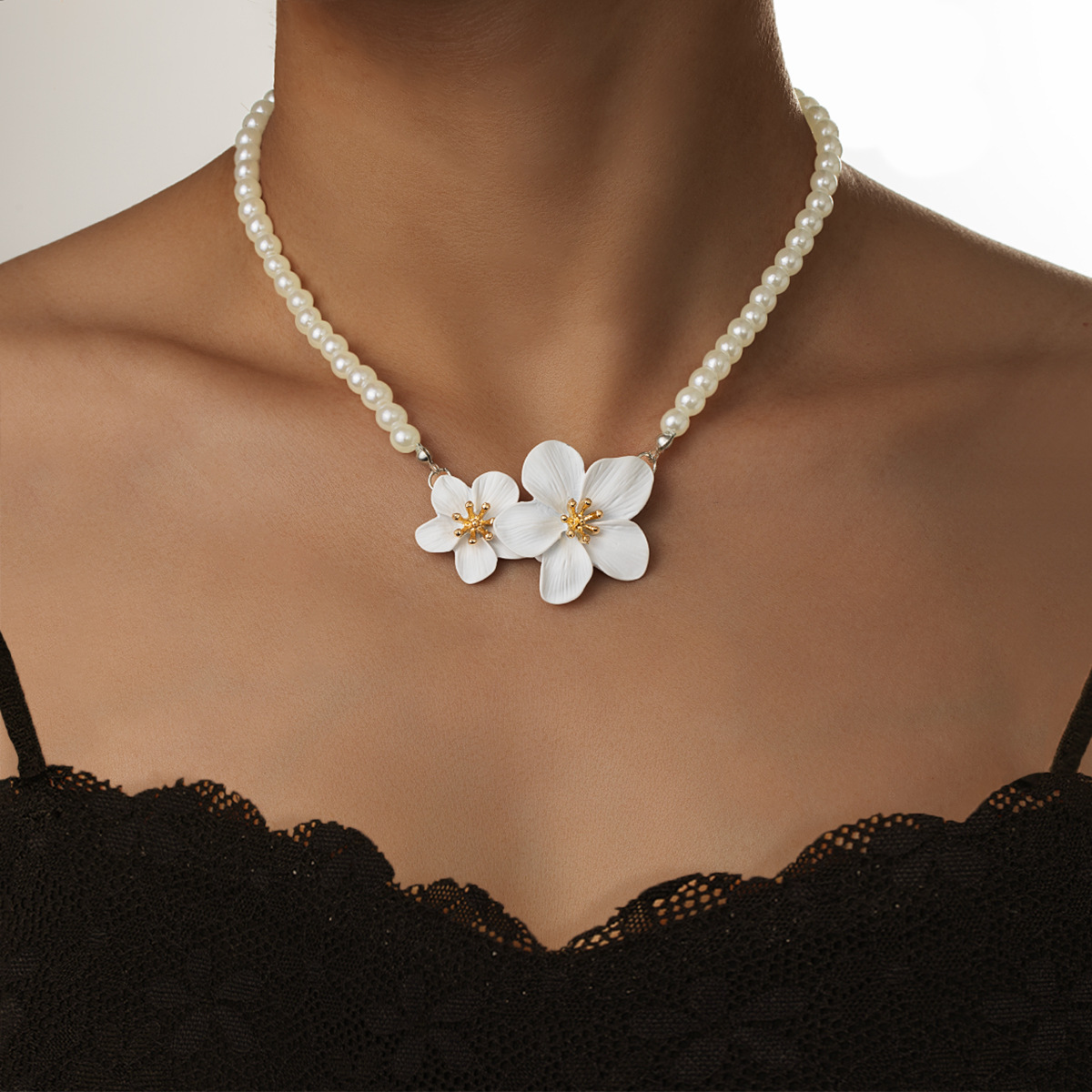 クロスボーダーのファッションの個性の優雅な立体の花のペンダントは真珠の数珠をまねて女性の鎖を調節することができます。