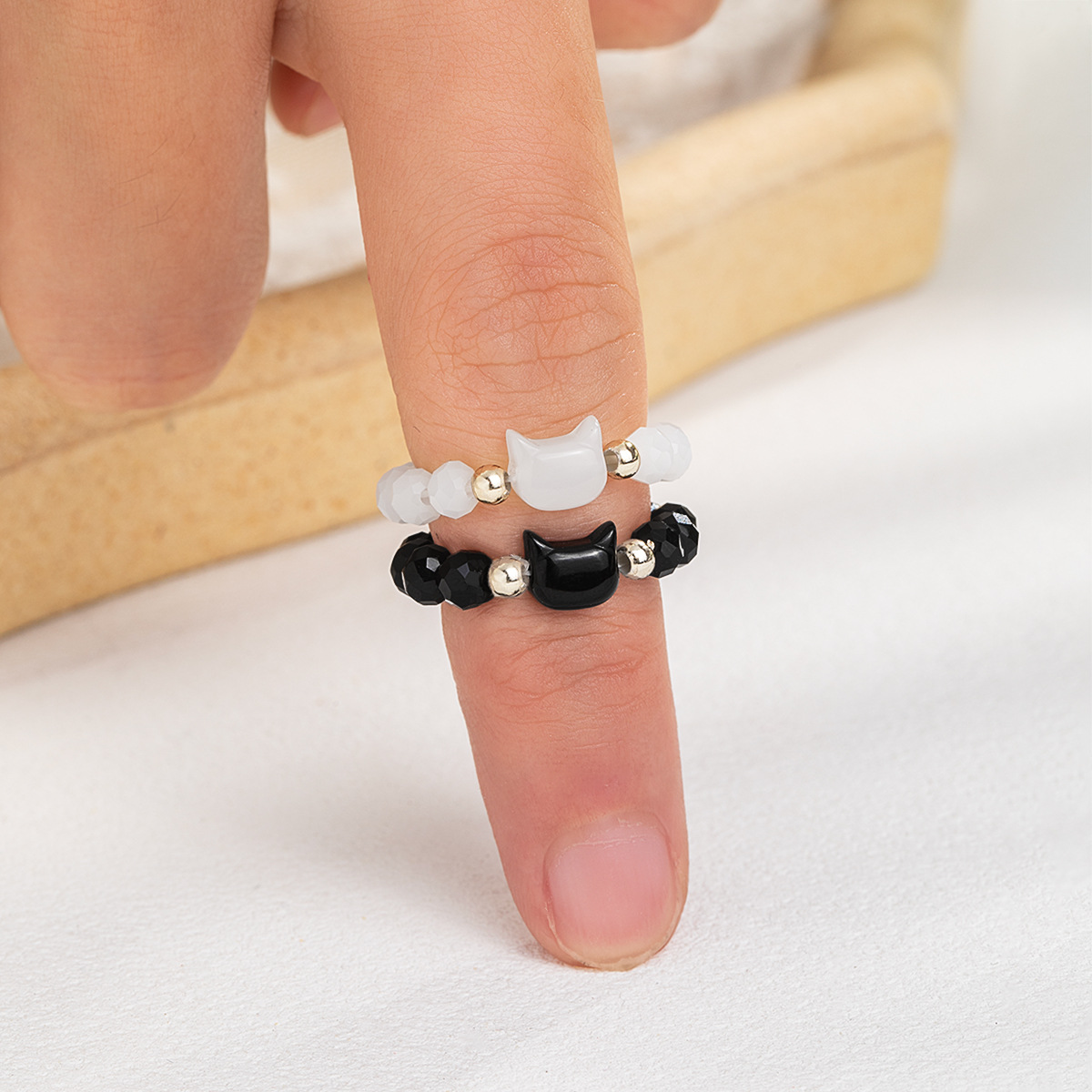 国境を越えたファッションかわいい猫黒と白のビーズリング2点セットカップルの指輪は男女共通です