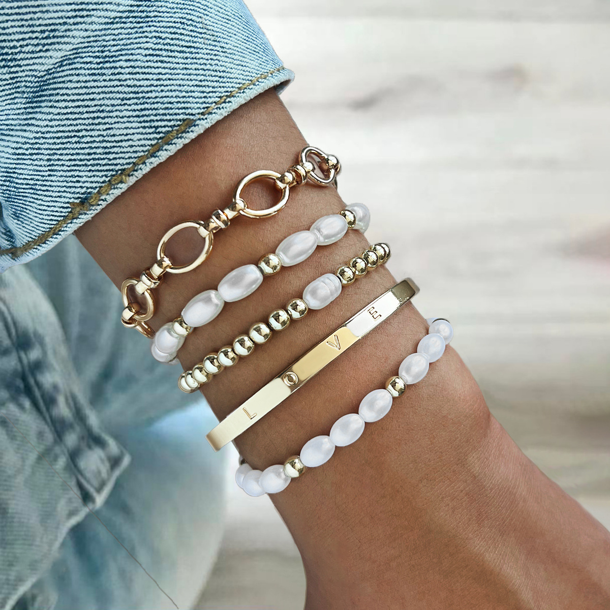 国境を越えたファッション個性的な風愛は真珠CCBビーズ合金麻花婦人ブレスレットの多くのセットを真似ている