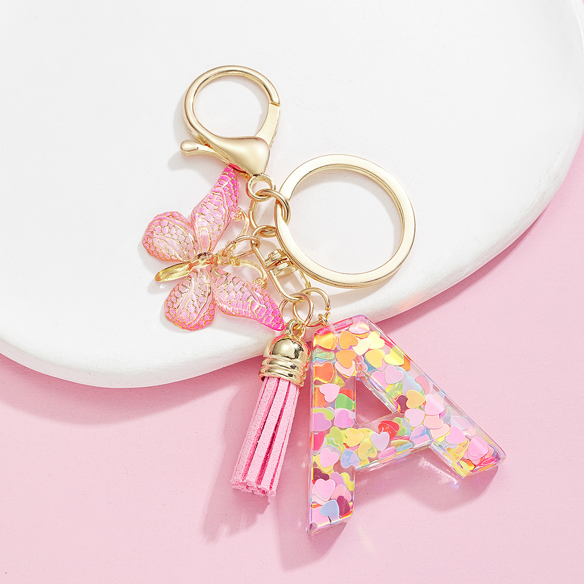 越境ファッション甜美風樹脂26アルファベットグラデーション蝶流蘇ペンダント女性式キーホルダー