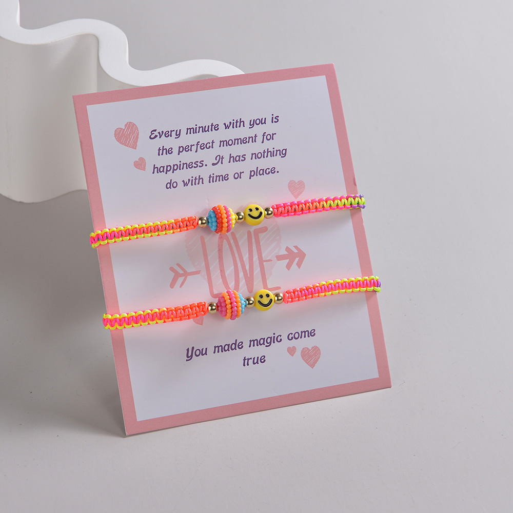 おしゃれなリゾート風笑顔カラーボール編み2本のカードブレスレットセットは友達カップルプレゼントに適しています。
