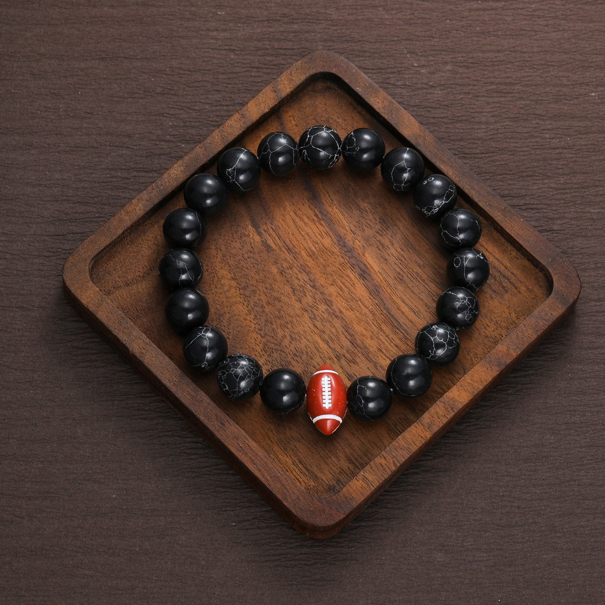 越境ファッション個性風男式黒松石ラグビーバスケットボール野球球技ビーズ弾力ブレスレット