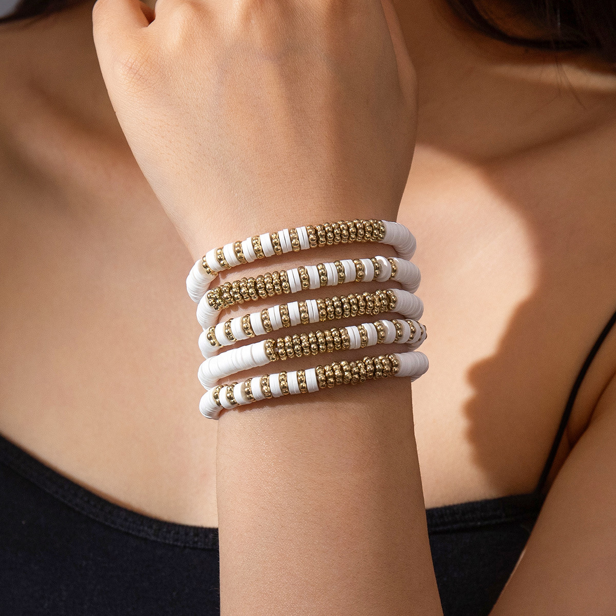 越境ファッション個性風樹脂ビーズ軟陶編み弾力婦人ブレスレット5点セット