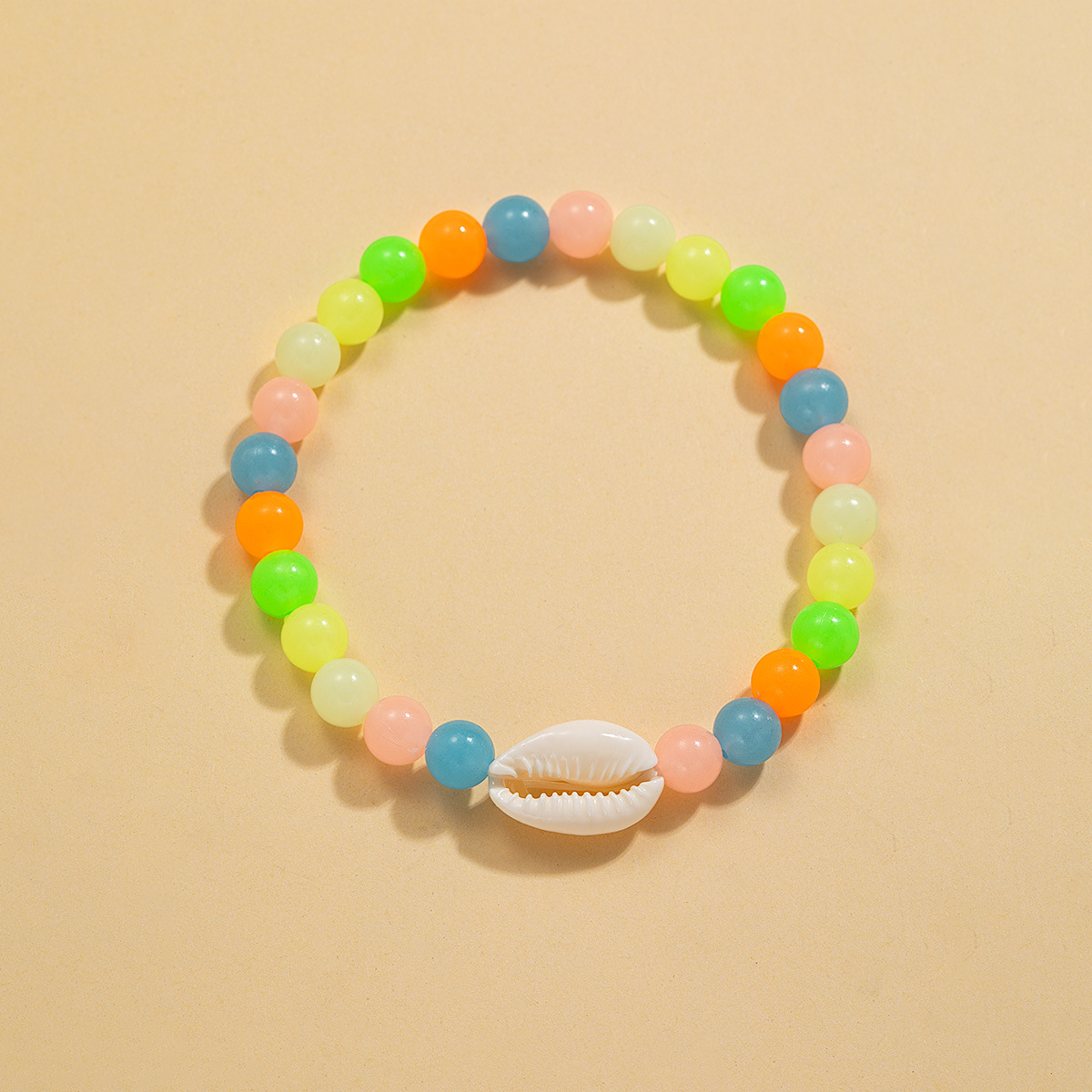 ボヘミアンのリゾート風夜光ランダムアクリルビーズ貝殻弾力足チェーン男女通用ビーチに適しています。