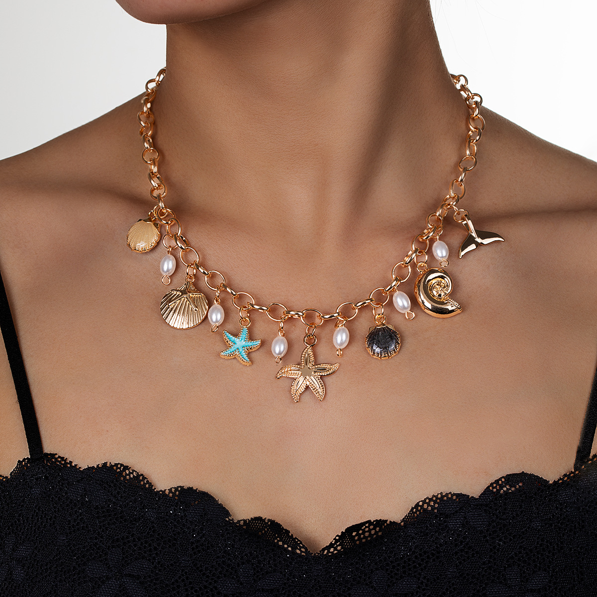 欧米国境を越えたファッション海洋風合金海星貝殻マーメイド尾ペンダント調節可能な女性ネックレス