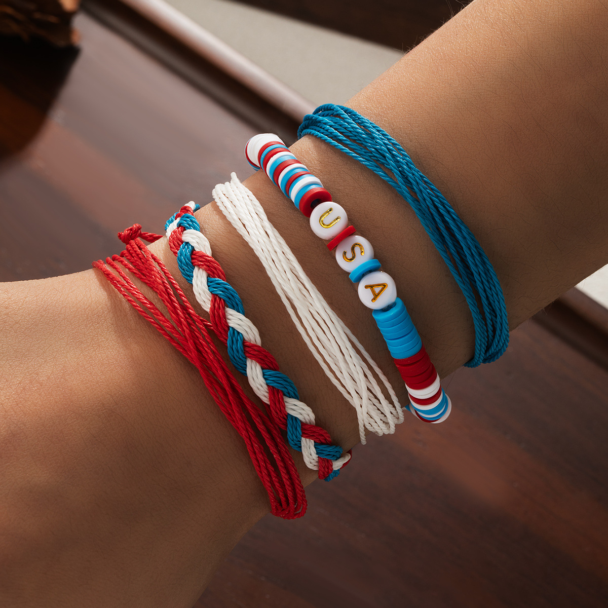 ファッションの個性的な風の樹脂のアルファベットの数珠の柔らかい陶の編みはクラフト紙のカードの女性のブレスレットの5セットを調節することができます。
