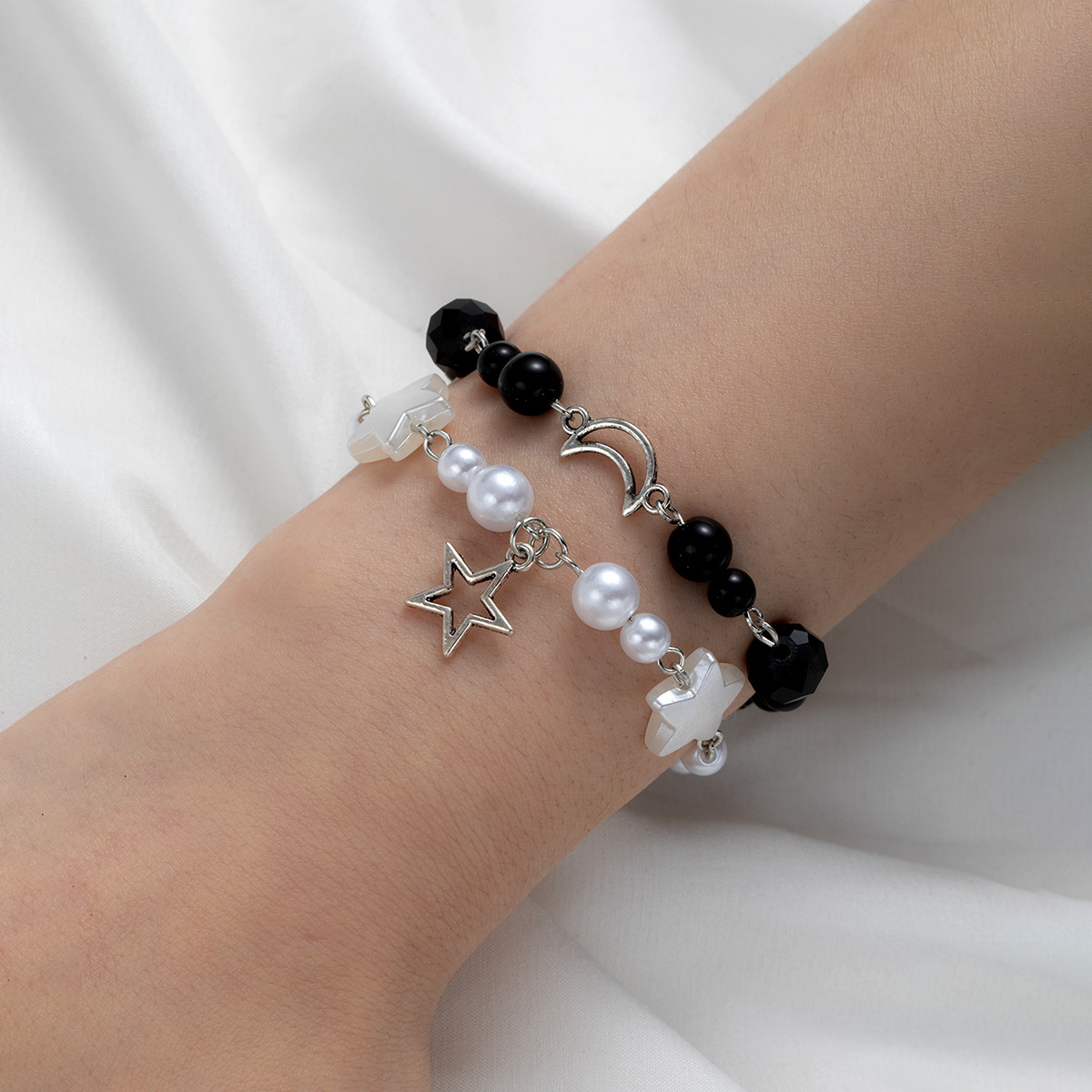 ファッションシンプル風合金月星桃心ペンダント真珠ビーズ調節可能なレディースブレスレット2点セット