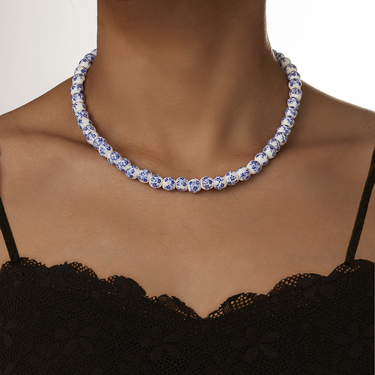 中国風の青と白の陶器シリーズビーズレトロネックレス鎖骨チェーンニッチファッショナブルな西洋デザインの女性のネックレス