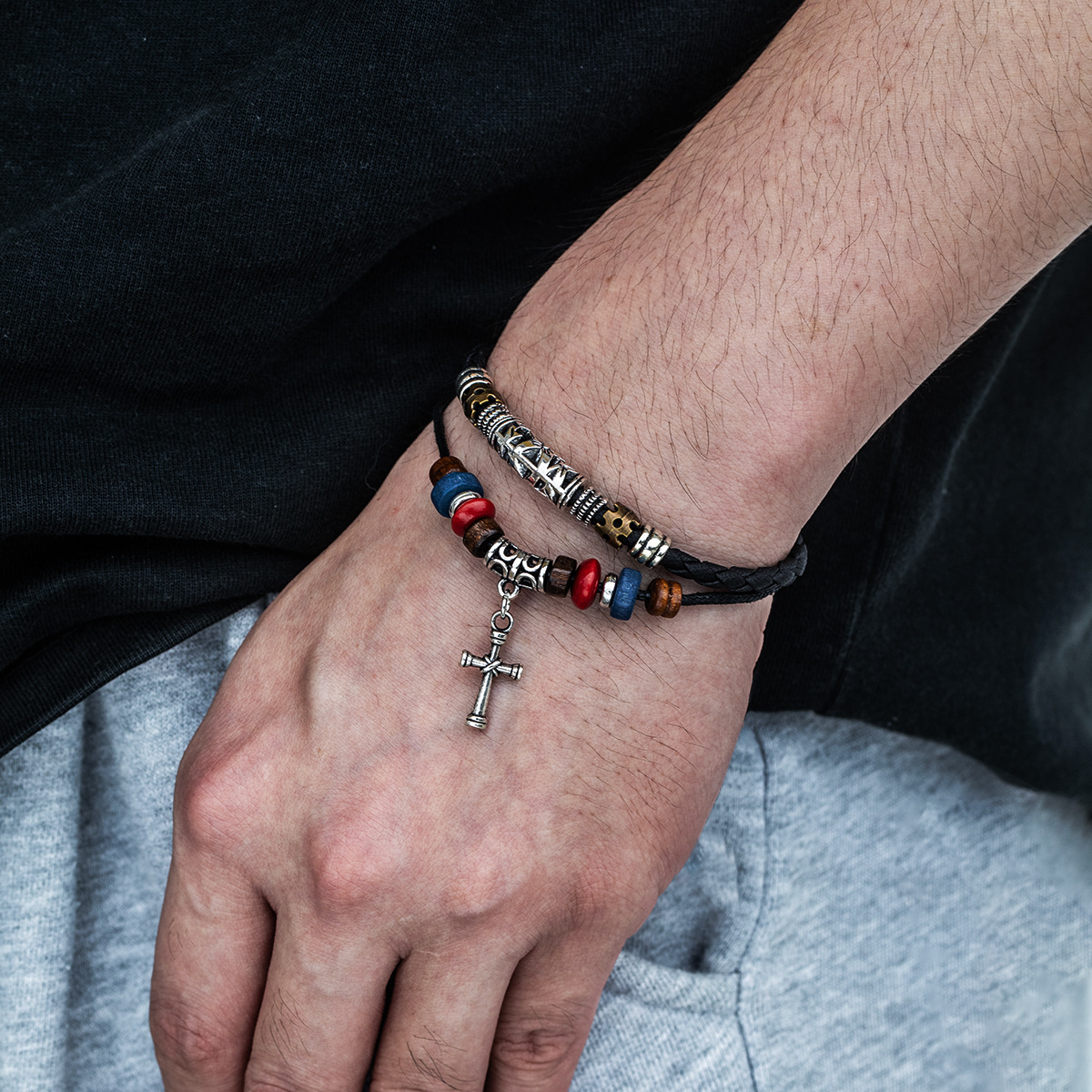 レトロな民族の合金の古い貨幣のクロスの木の葉の桃の心のペンダントは二重に編むことができて男性のブレスレットを調節することができます。