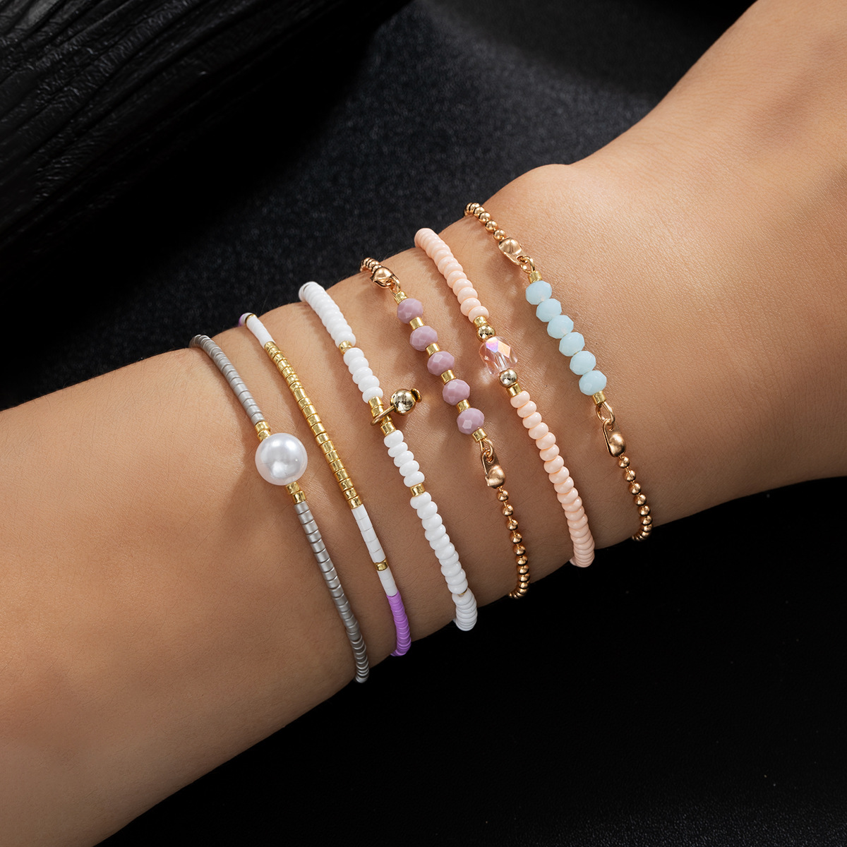 欧米の越境ファッションの個性は風をかぶって真珠の多色の米のビーズの弾力性の女性のブレスレットの6セットをまねます。