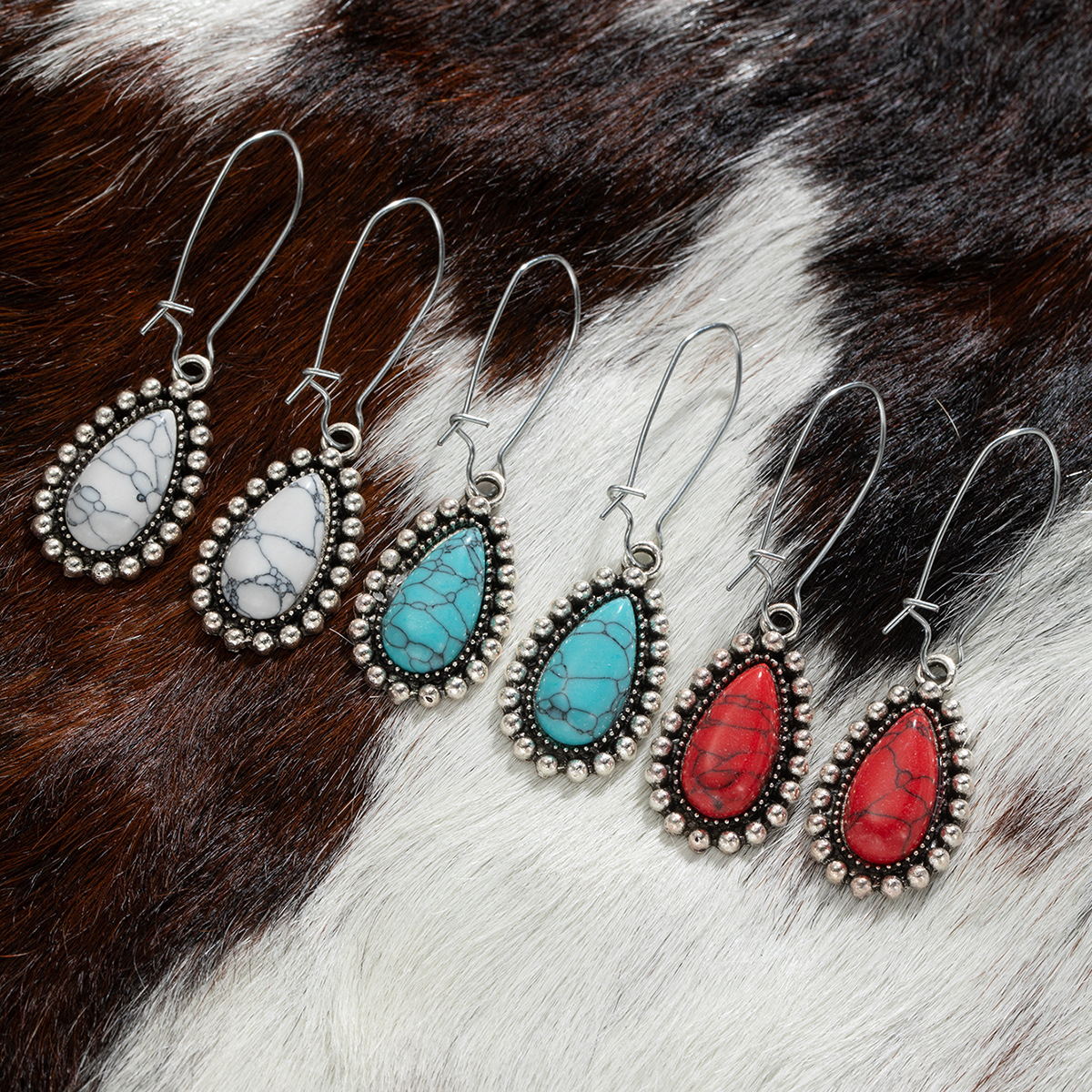 国境を越えたレトロな民族風合金水滴イヤリング松石ビーズペンダント女性合金イヤリング6点セット