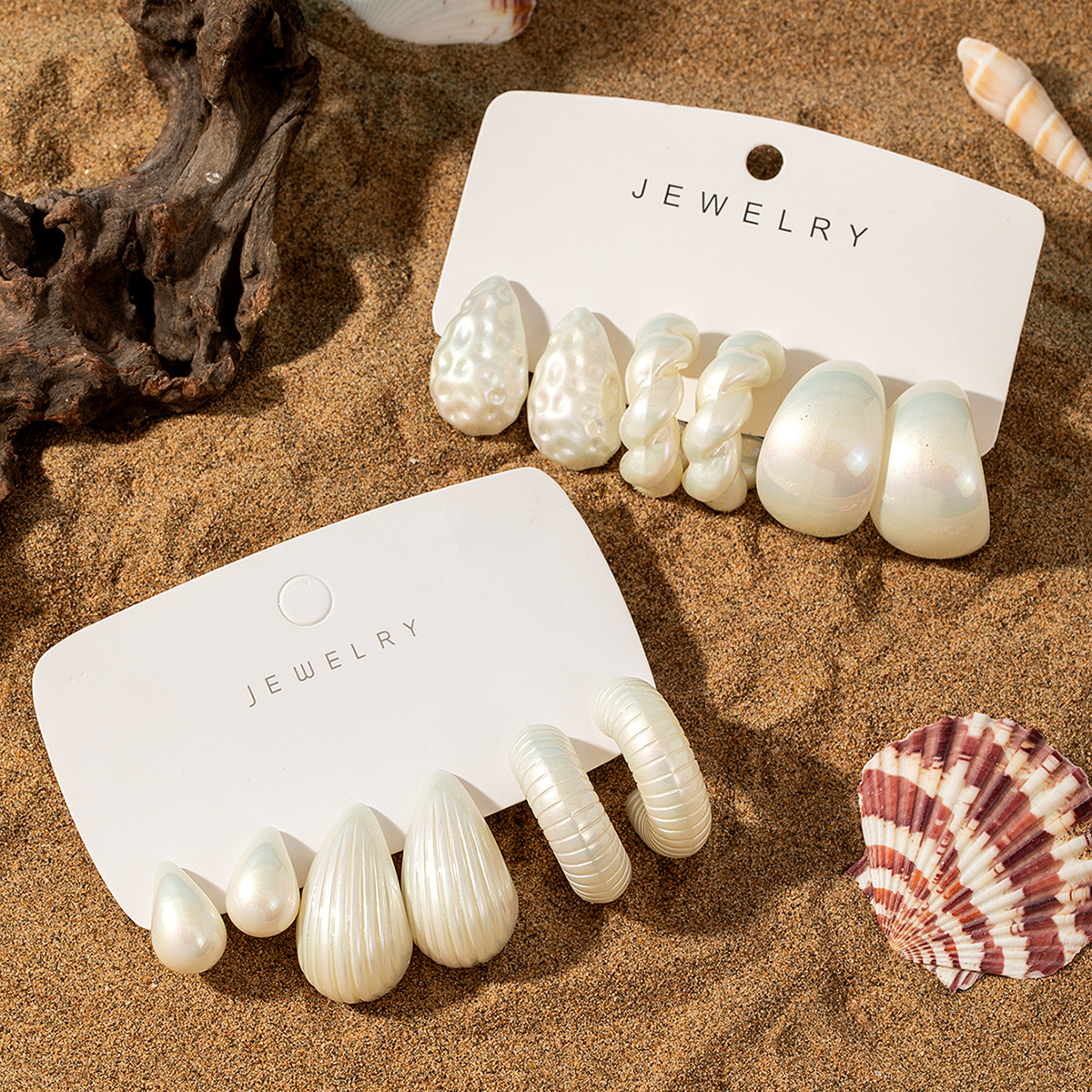 クロスボーダーファッション個性誇張スタイル ABS 模造真珠ドロップ型ツイストマルチピースレディースカードイヤリング
