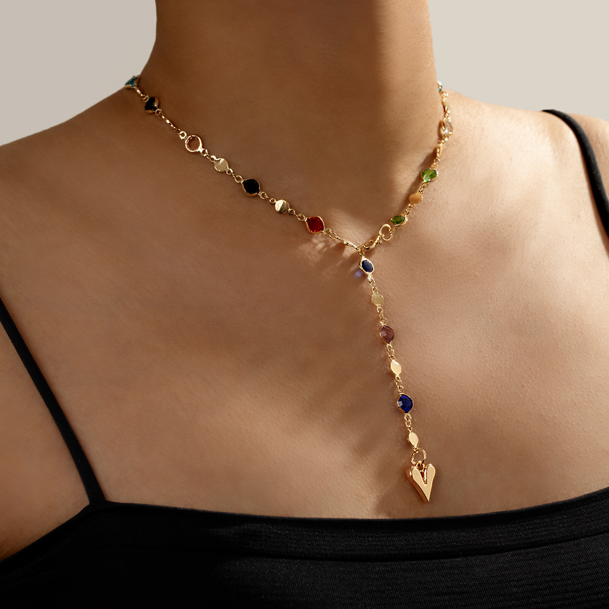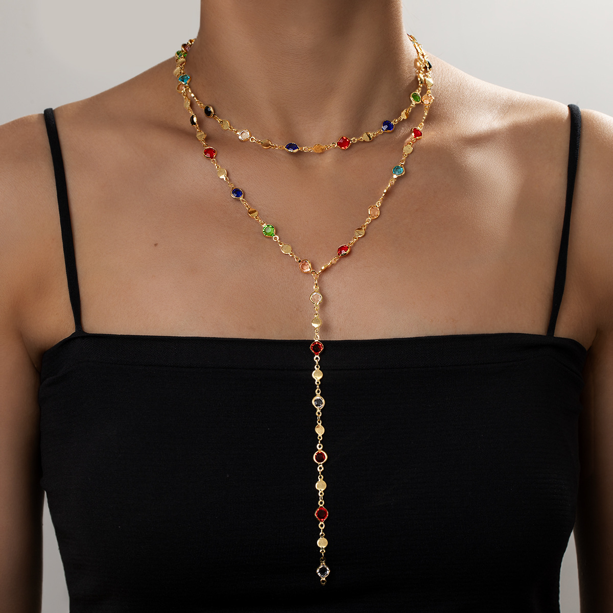 Amazonクロスボーダートレンド売れ筋ファッションパーソナライズされたスタイルのカラフルなガラスライスビーズY字型チェーン二層ロングネックレス女性用