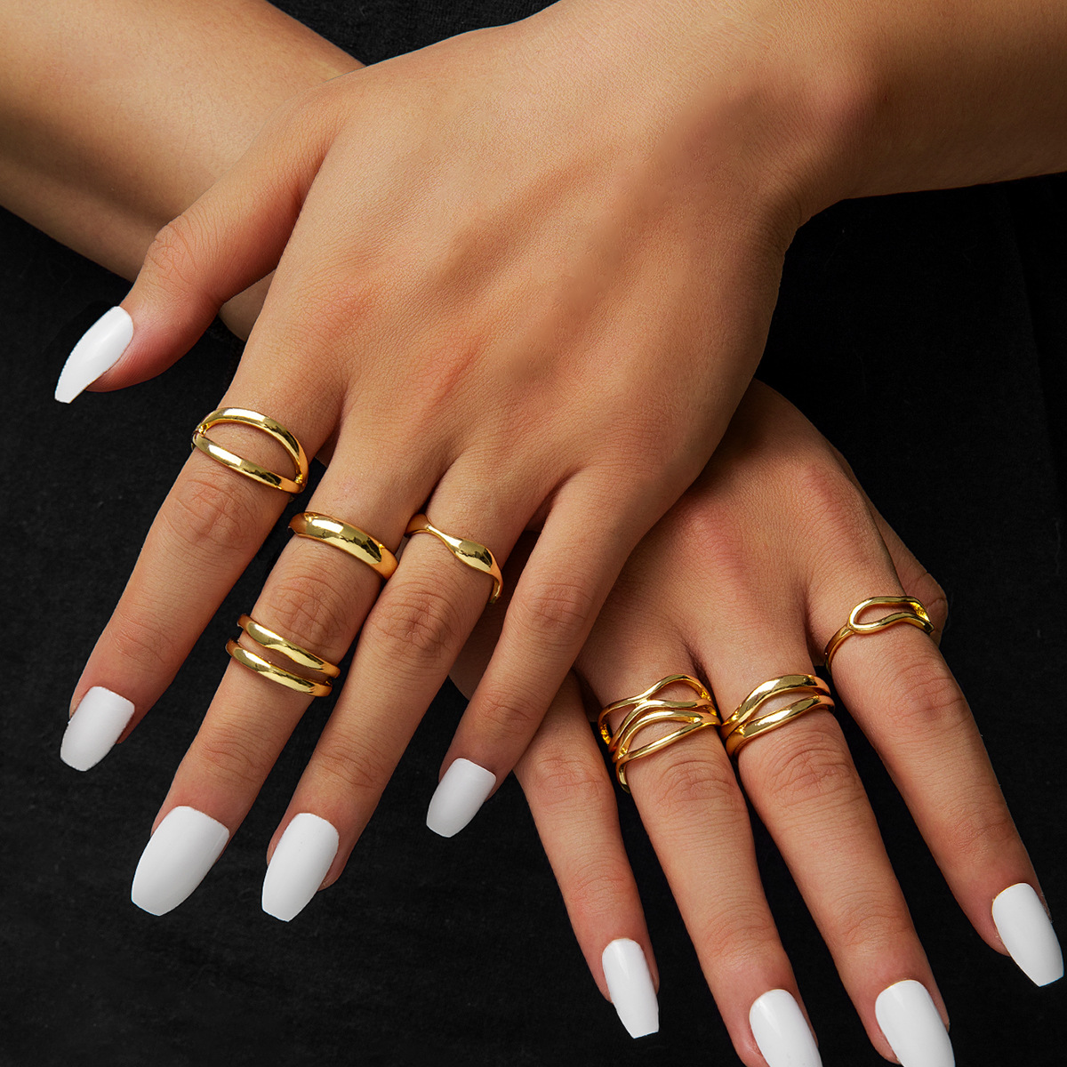 Amazonクロスボーダートレンドファッション個性シンプル合金幾何学マルチピースレディースリング7点ジュエリーセット