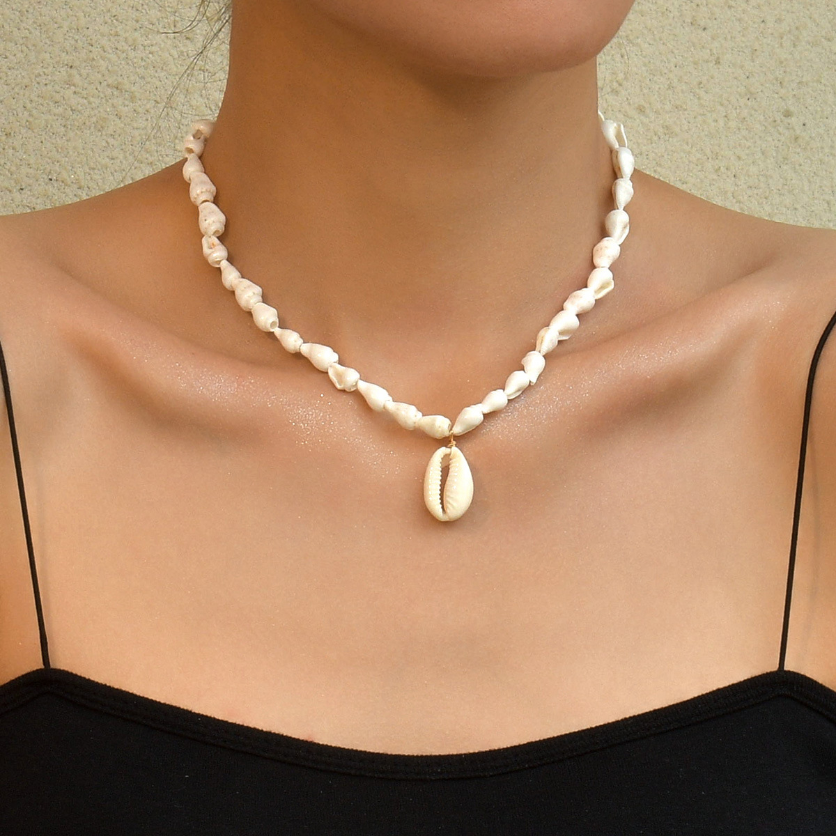 夏ボヘミアンホリデーオーシャンスタイル巻き貝ビーズシェルペンダント調節可能な単層レディースネックレス