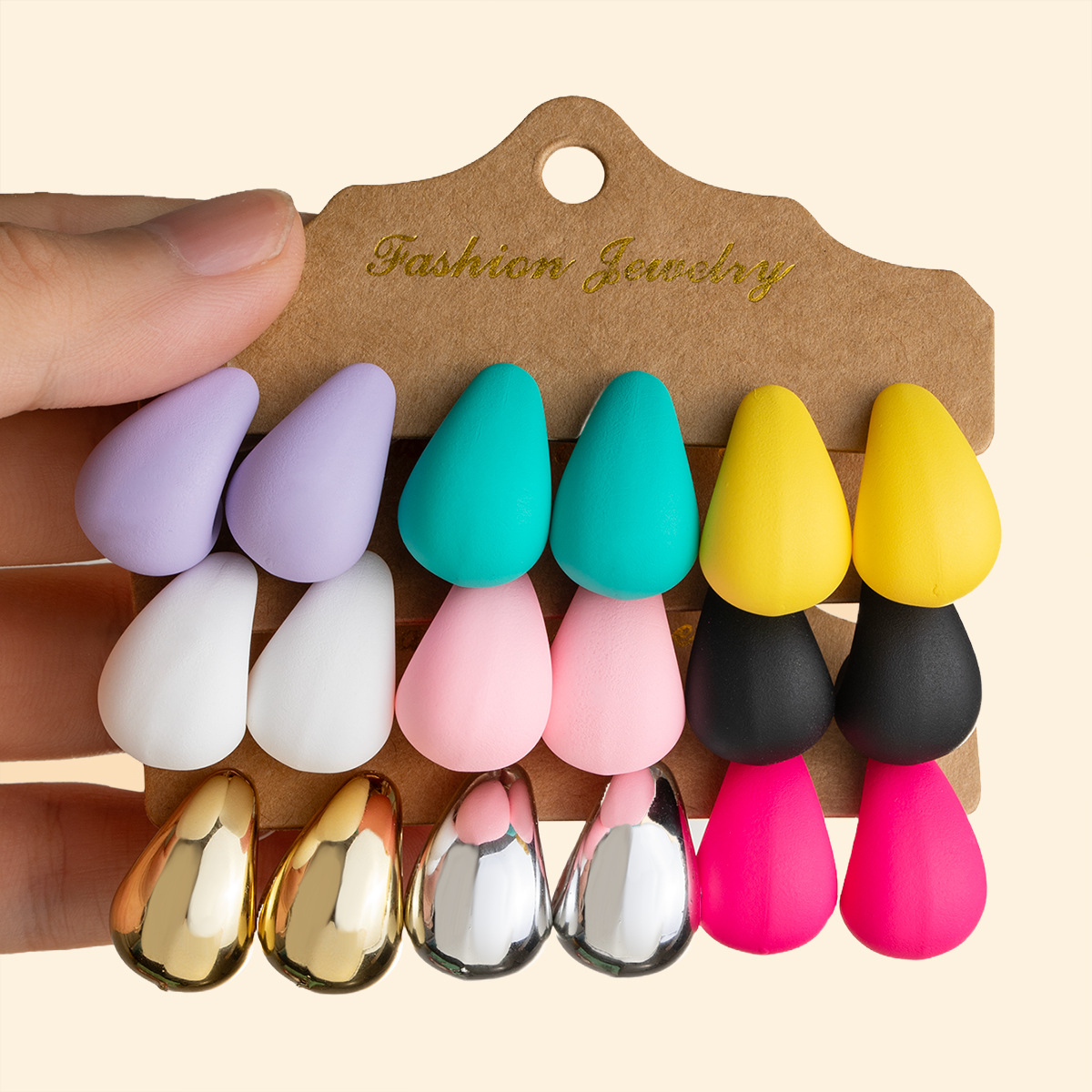 クロスボーダーファッション新鮮で甘いカラフルな樹脂ドロップ型女性のパーソナライズされたニッチ多用途カード複数ピースイヤリングセット