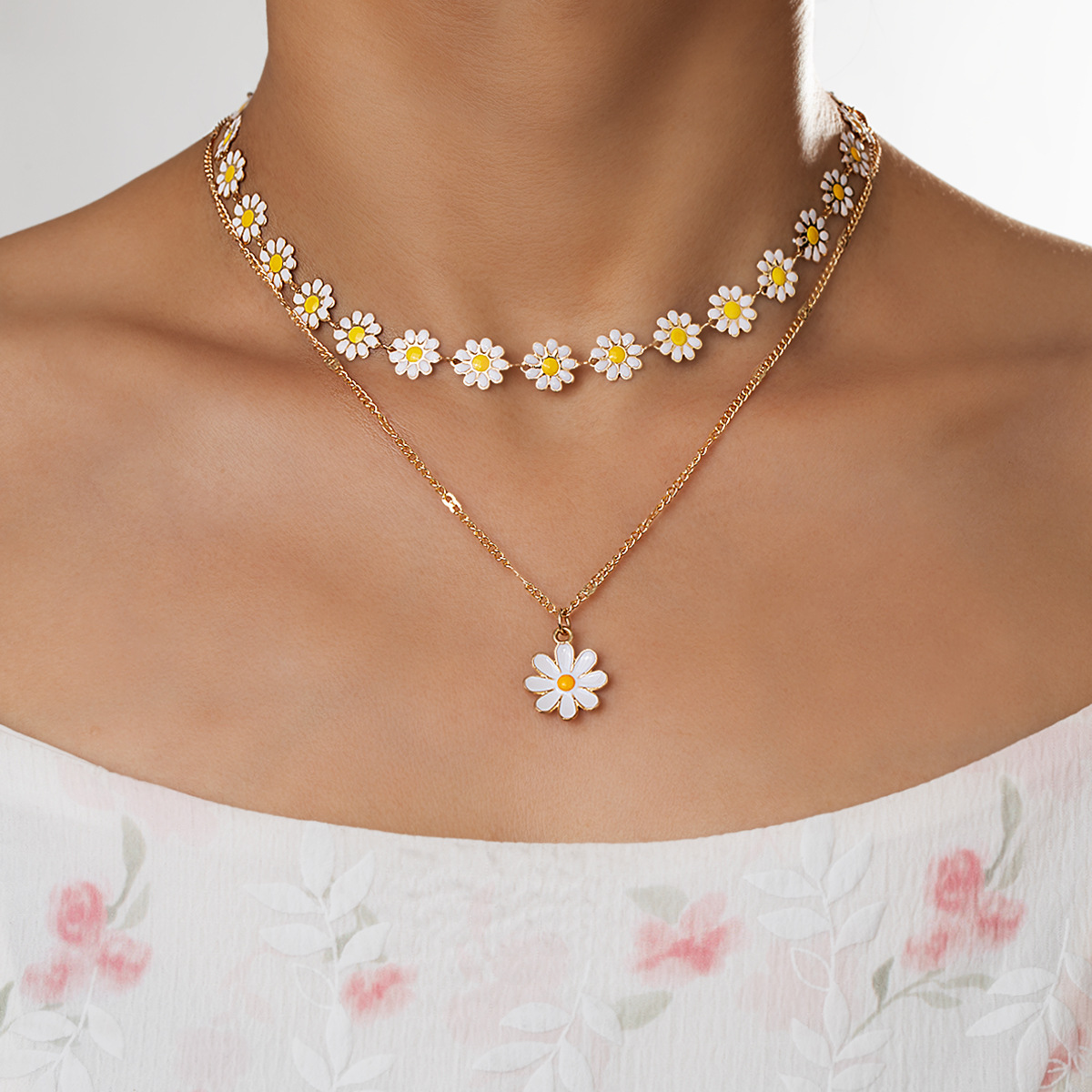 クロスボーダーファッション甘くてかわいいスタイル合金ひまわりペンダント二層積み重ね調節可能な女性のネックレスジュエリー