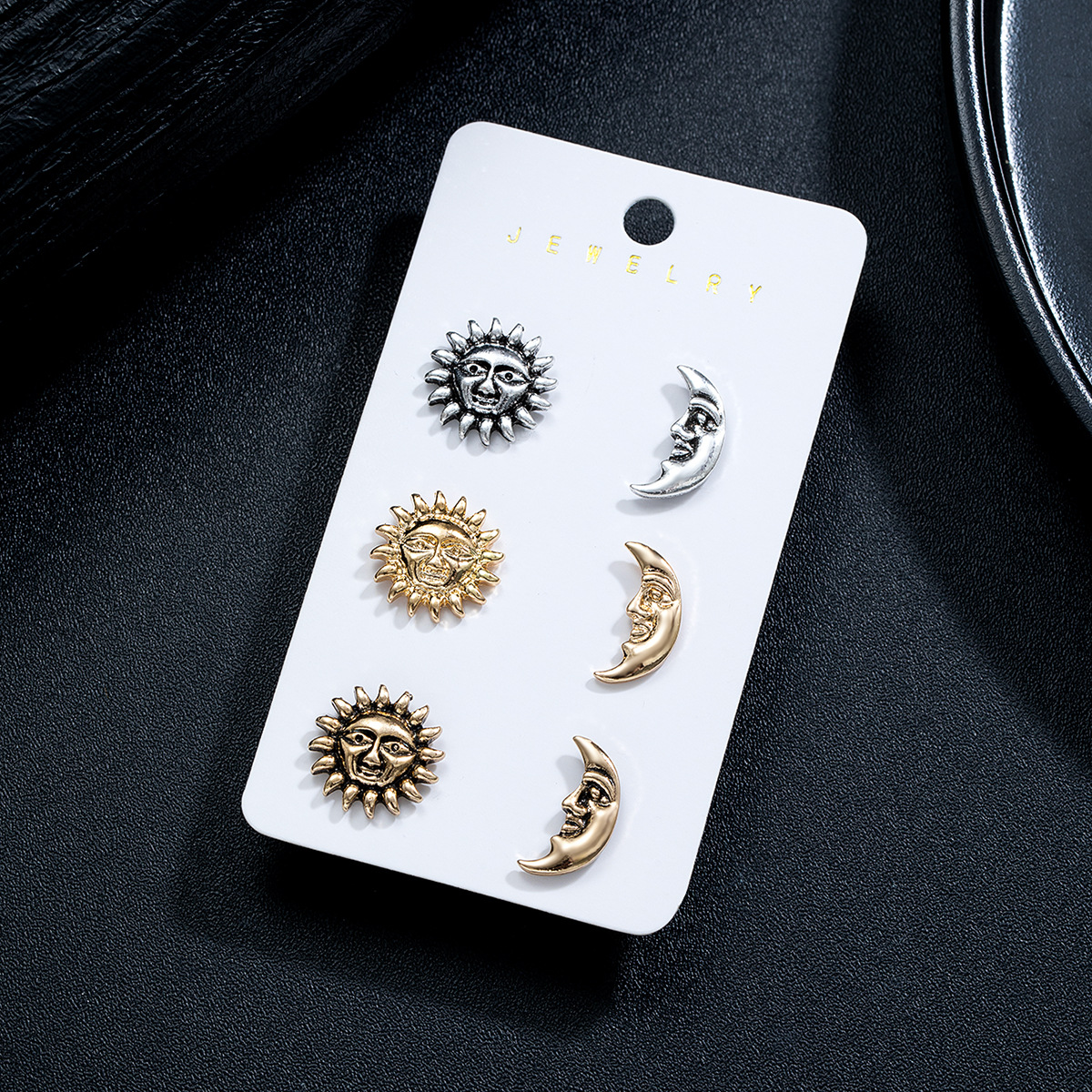 クロスボーダートレンドホットセールファッションパーソナライズされたクリエイティブ合金サンムーンイヤリング非対称マルチピースレディースイヤリング