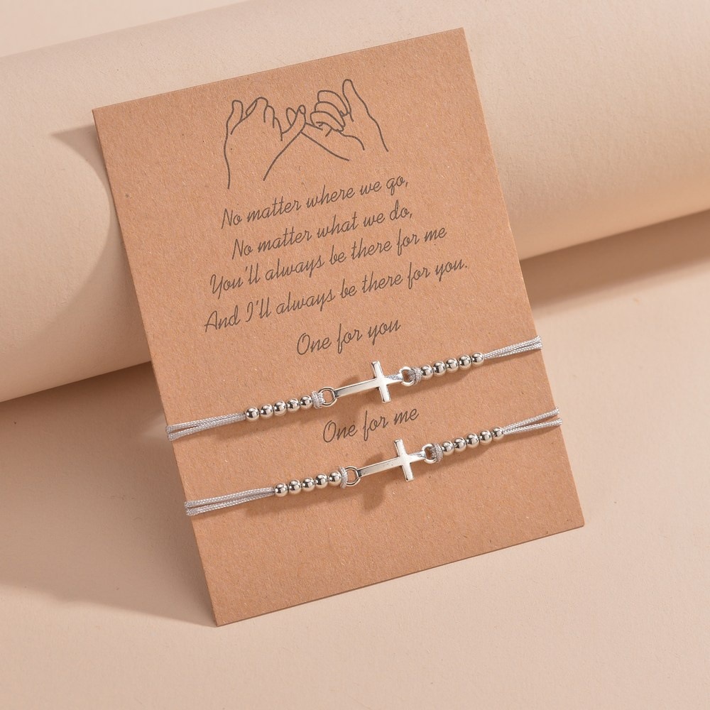 ファッショナブルな個性のシンプルなスタイルの合金クロスゴールドビーズロープ編組調節可能な二層カードレディースブレスレット