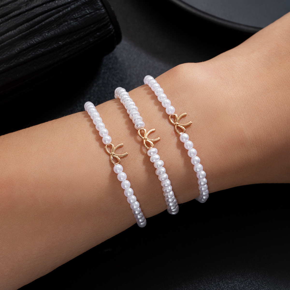 ヨーロッパとアメリカのファッショナブルなエレガントでシンプルな ABS 模造真珠合金リボンビーズ弾性糸ブレスレット 3 点セット女性用