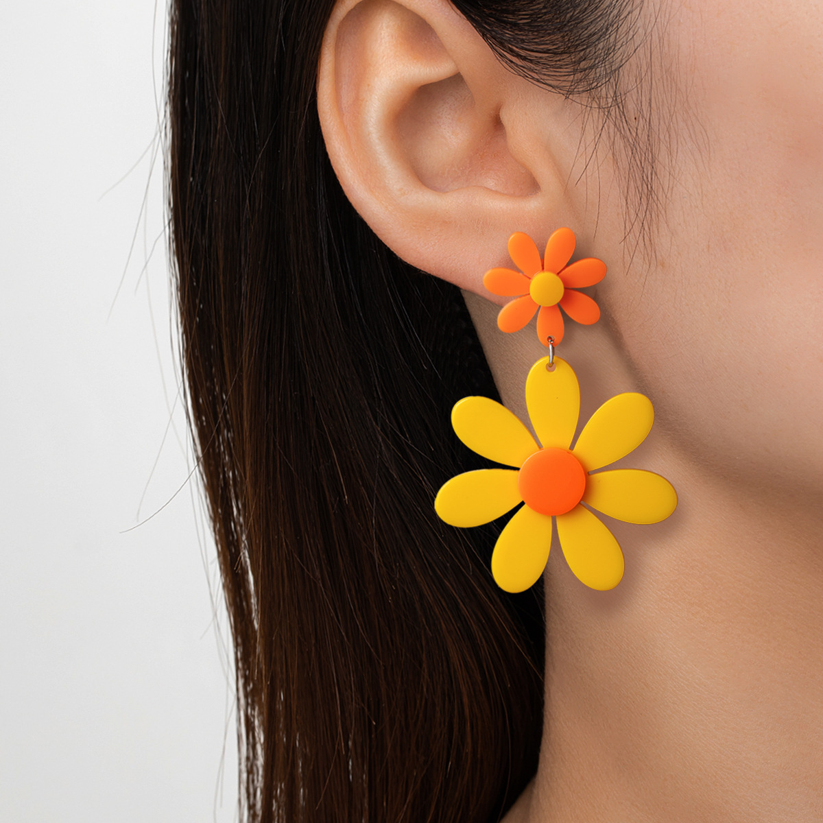 Amazon クロスボーダー新しいファッションクリエイティブ新鮮な甘いかわいいカラフルなアクリルフラワー非対称イヤリング女性用