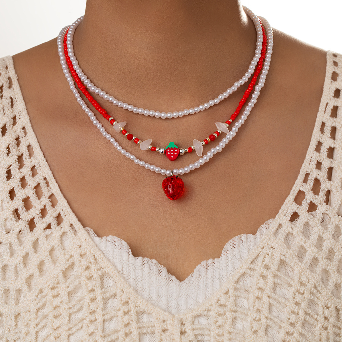 AliExpress クロスボーダー新しい新鮮で甘くてかわいいイチゴペンダント ABS 模造真珠ビーズ多層ネックレス