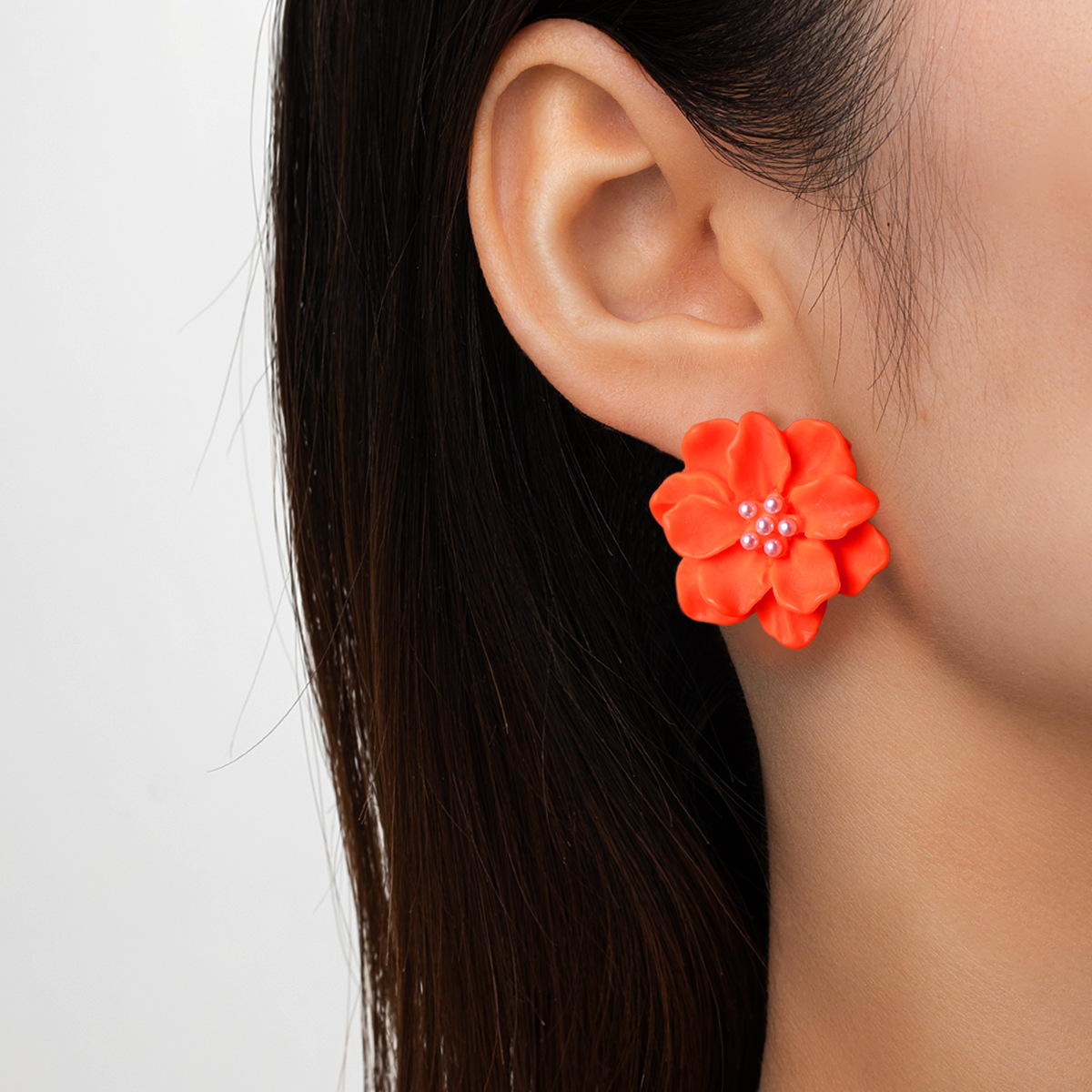 ヨーロッパとアメリカのファッション、新鮮で甘い、シンプルで多用途なオレンジの花の女性用イヤリング、Amazon AliExpressのクロスボーダージュエリー