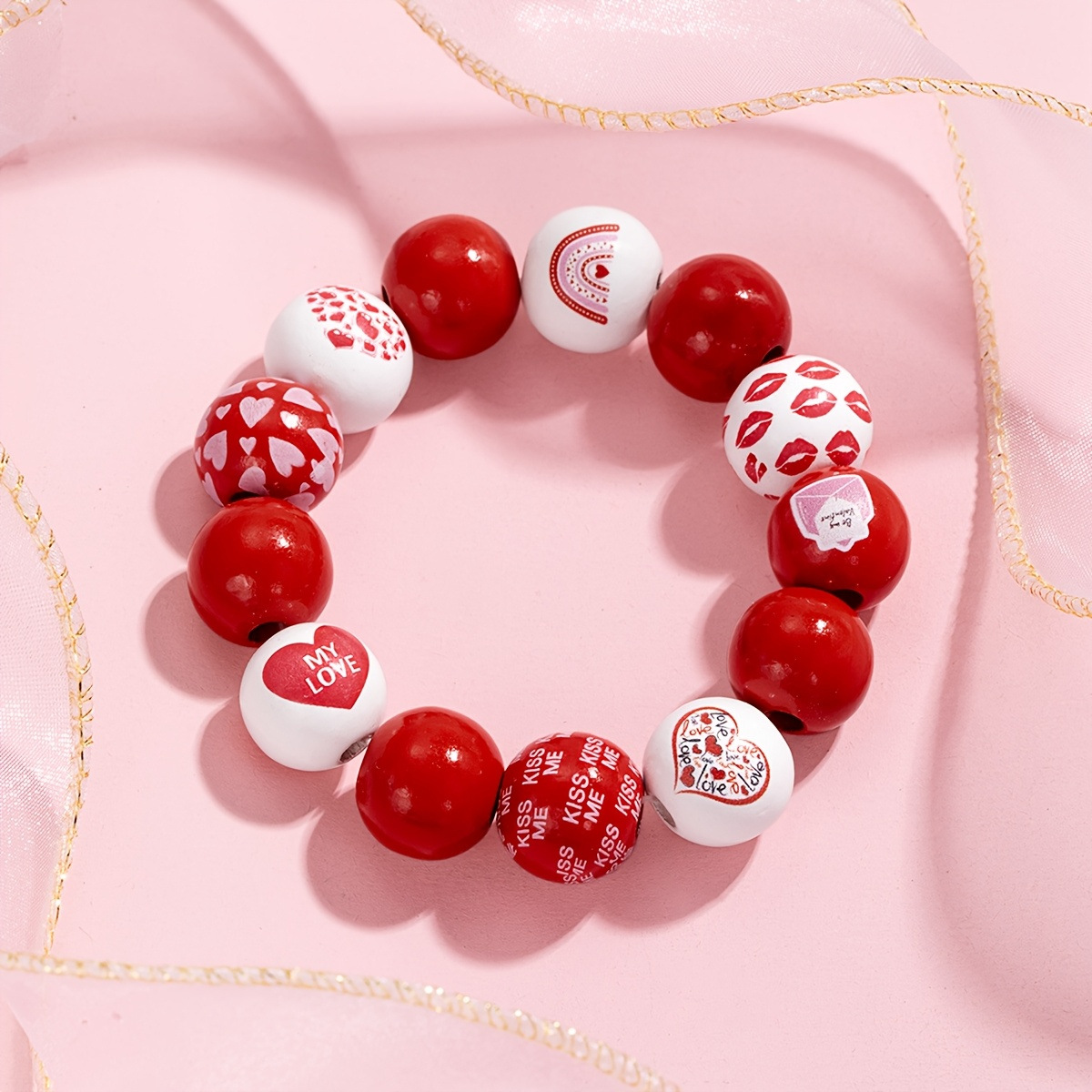クロスボーダーヨーロッパとアメリカのファッションバレンタインデーギフト愛赤い唇英字ウッドビーズ弾性ブレスレットユニセックス