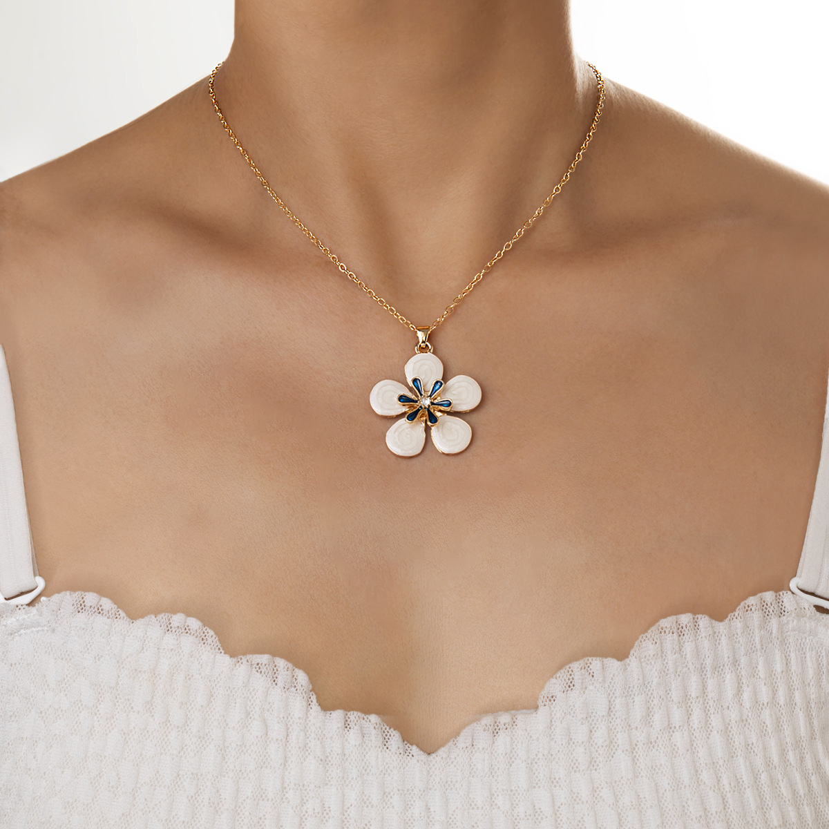 夏の新しいファッションシンプルで新鮮で甘い2色の立体フラワーペンダント合金レディースネックレスイヤリングジュエリー